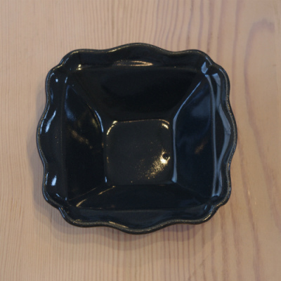 昔、ヨーロッパを西洋と呼んでいた頃に使われていた器を連想させる、ひらひらとした縁のついた、正方形のお鉢です。色は「ヨルノアオ」。サイズ:たて12×よこ12×高さ4cm よしざわ窯 陶器 益子焼 日本製